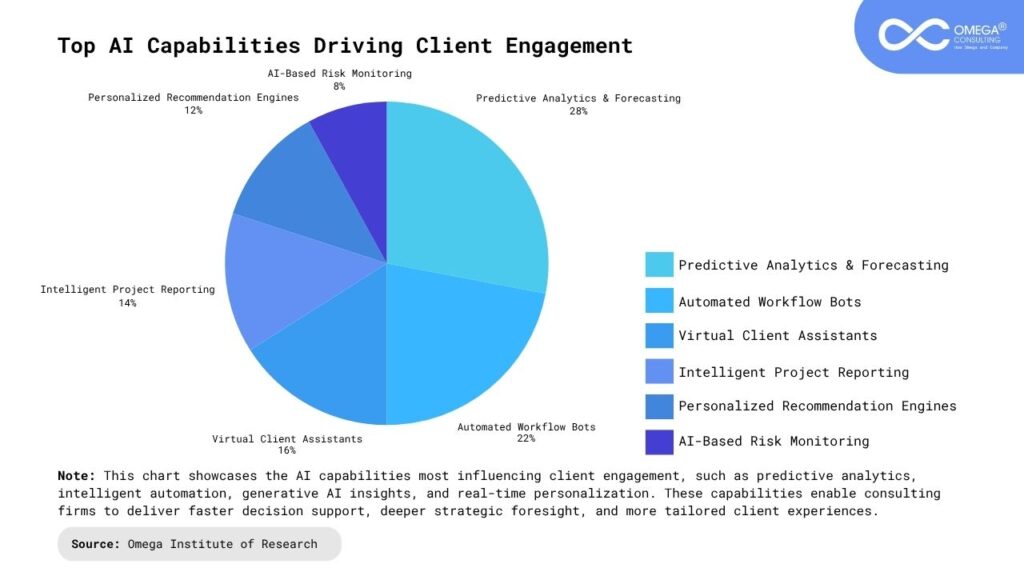 Conversational AI & Chatbots: Enhance client communication and support by providing on-demand access to insights, documents, and recommendations. These systems act as virtual consulting assistants, answering questions, summarizing reports, and escalating critical issues instantly. They reduce response times, improve client satisfaction, and ensure executives always have strategic guidance at their fingertips. As conversational AI grows more intelligent, it helps consultants scale personal attention and maintain high-touch engagement at enterprise scale.