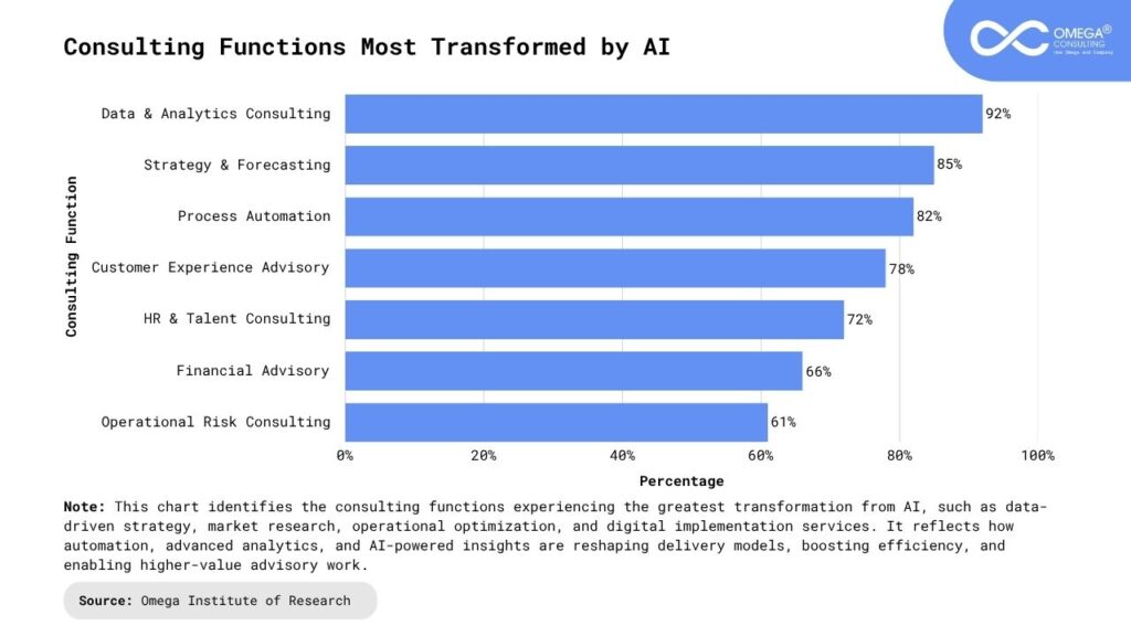 Outcome-Based Consulting: AI enables continuous performance tracking, allowing firms to measure outcomes in real time. This shifts consulting models from deliverables-based contracts to outcome-oriented partnerships, where value is quantified and shared transparently. By aligning incentives with client results, AI strengthens accountability and creates long-term collaboration rooted in measurable success. As performance data flows in continuously, consultants can refine strategies dynamically, ensuring projects remain aligned with evolving business goals.