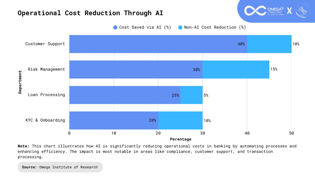 Cost Savings: By automating repetitive and time-consuming tasks such as onboarding, compliance checks, KYC (Know Your Customer) processes, and customer queries banks can significantly reduce their operational overhead. Fewer resources are required to handle high-volume tasks, which leads to more efficient staffing and lower labor costs. Moreover, AI-driven tools can scale easily without proportional increases in cost, making them ideal for institutions aiming to grow without adding administrative burden. These cost efficiencies can then be passed on to customers in the form of better rates or services, creating a competitive edge.