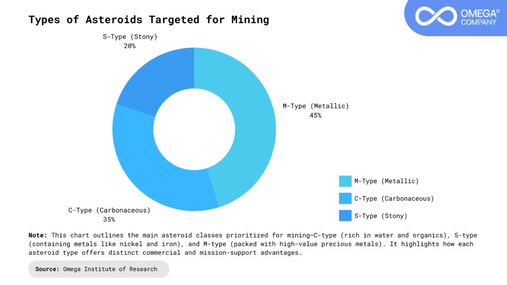 Identifying the Right Asteroids: Using telescopes and space probes, scientists analyze asteroid surfaces through spectroscopy to determine their composition and mining potential. The most promising targets include C-type asteroids rich in water, S-type asteroids containing iron and nickel, and M-type asteroids filled with precious metals like platinum. Each type offers unique benefits for fuel production, construction, or economic return. Choosing the right asteroid is crucial for mission success and long-term profitability.