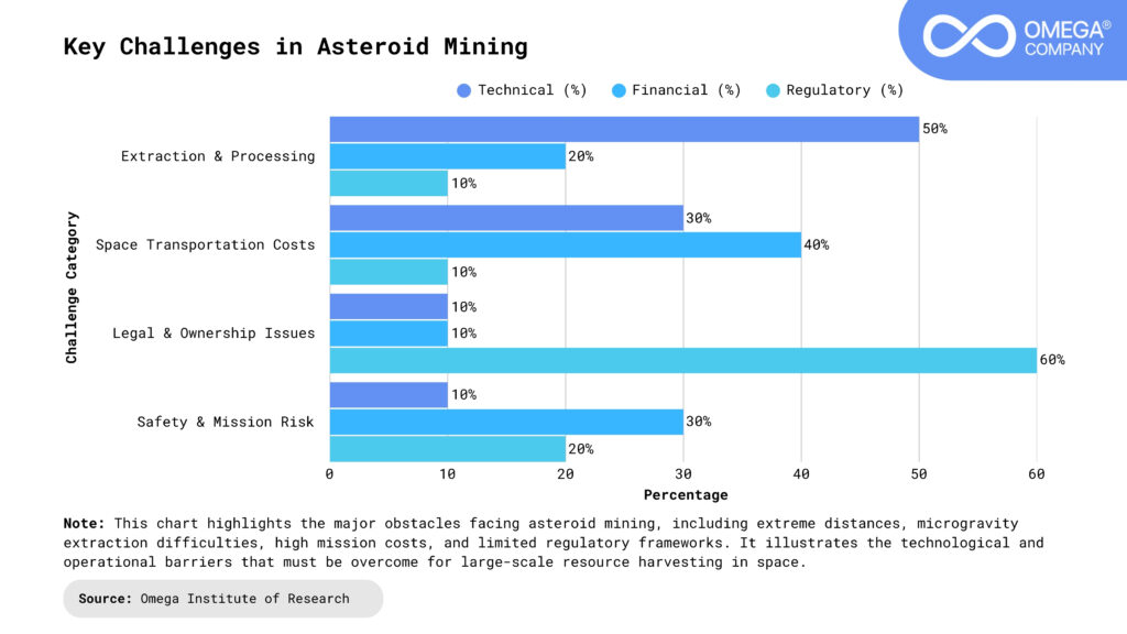 While promising, asteroid mining faces several challenges:
