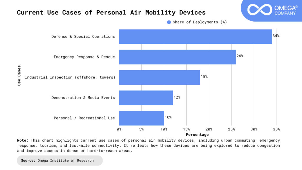 Urban Air Mobility Integration: PAMDs are likely to gradually integrate into broader Urban Air Mobility (UAM) ecosystems alongside air taxis, vertiports, and managed aerial corridors. Rather than operating independently, personal flight devices could become part of coordinated airspace systems with shared navigation, traffic management, and safety protocols. This integration would allow controlled short-range travel, emergency access, and specialized missions within cities. Over time, such coordination could transform how low-altitude airspace is planned and regulated.