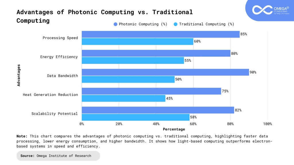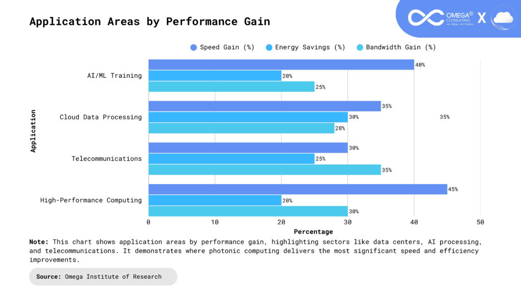 Cloud Computing & Data Centers: Data centers consume enormous amounts of energy, much of it wasted in cooling systems due to electronic heat generation. Photonic servers, with their low-latency and energy-efficient designs, could make hyperscale facilities both faster and greener. This not only reduces operational costs by billions but also minimizes the carbon footprint of the digital economy.
