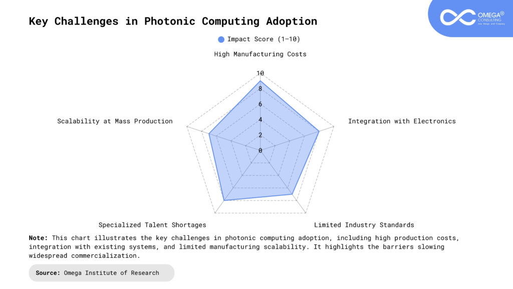 High Development Costs: Building photonic processors demands advanced materials, precision equipment, and specialized expertise, all of which drive up costs significantly. At present, developing photonic hardware is more expensive than producing traditional silicon chips. These high initial investments slow adoption, especially among smaller companies and research labs.