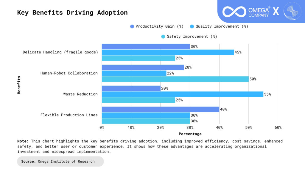 Improved Workforce Safety: Safer collaboration reduces injury risk and insurance costs while improving employee productivity and retention. Reduced exposure to repetitive strain and hazardous tasks enhances long-term workforce well-being. This supports stronger compliance with workplace safety regulations and strengthens employer brand reputation.