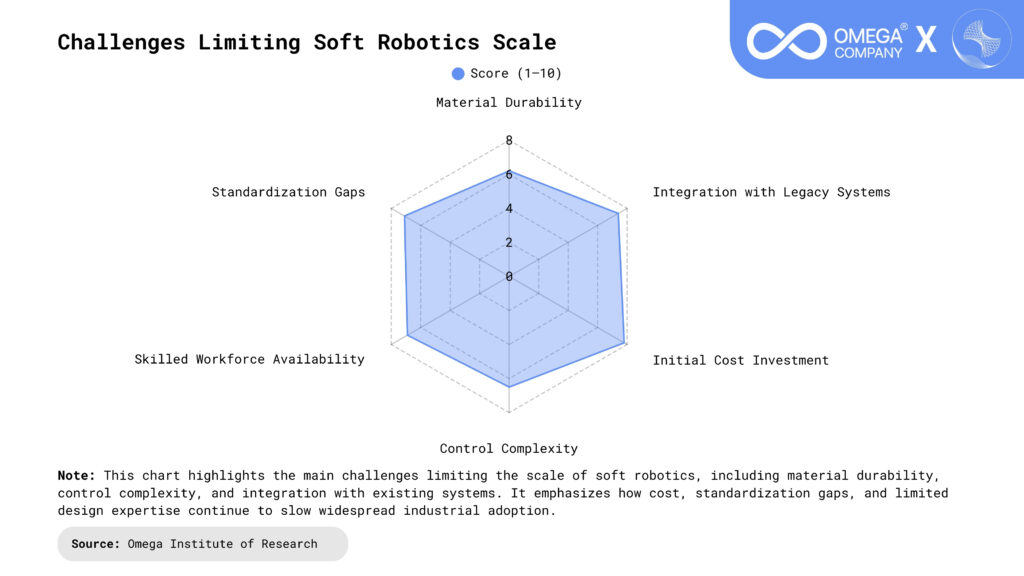 Integration with Legacy Automation Infrastructure: Most existing factories are designed around rigid robotic architectures, PLC systems, and fixed workflows. Integrating soft robotics into these environments may require middleware, interface adaptation, or reconfiguration of production processes. This can increase implementation complexity, extend deployment timelines, and require cross-functional coordination between operations, IT, and engineering teams. At an enterprise level, successful integration depends on clear system architecture planning, interoperability standards, and phased deployment strategies that minimize disruption to ongoing production.